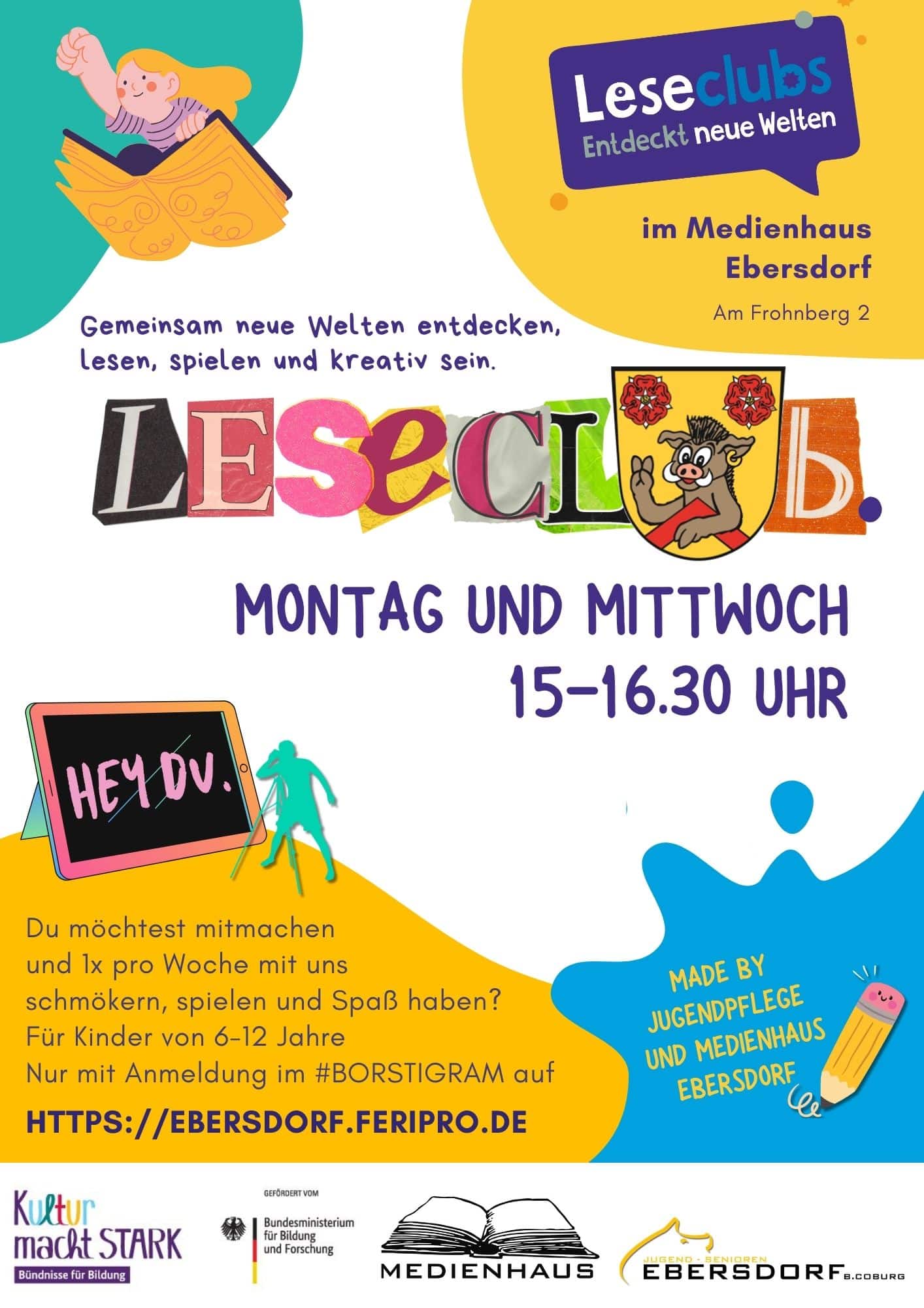 Der Leseclub in Ebersdorf ist ein Kooperationsprojekt der Jugendarbeit, des Medienhauses und der Stiftung Lesen und wird bis zum Jahr 2027 durch das Programm „Kultur macht stark. Bündnisse für Bildung“ des Bundesministeriums für Kultur und Forschung wieder gefördert .
