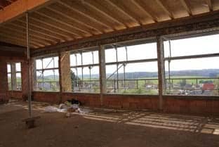 Die Raumaufteilung ist bereits gut erkennbar. Wobei die Räume besonders durch den herrlichen Ausblick bestechen und durch die großen Fenster und hohen Decken besonders großzügig wirken. Bei einer ersten Begehung konnte man sich schon gut vorstellen, welchen Spaß die Kinder dort einmal haben werden.